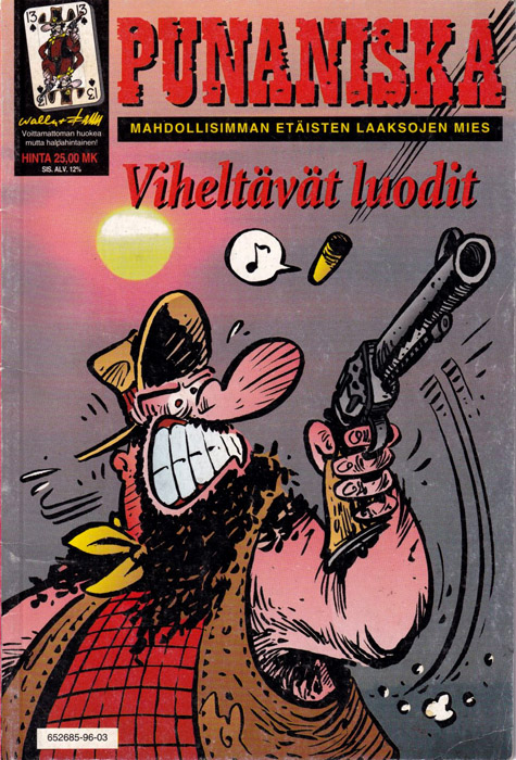 [30 x 21 cm pysty albumi; 64 s. + kannet, ei skp; kansi väri (tausta musta, upot. väripiirros, lad. valk. gem. tekijä ja vers. otsikko ja kust. + valkoisella oik. ylänurkassa ”Sarjakuva 100 vuotta” -logo; tk musta, lad. valk. gem. esittely ja omassa kentässä ISBN-viivakoodi; selkä musta, lad. valk. vers. tekijä, otsikko ja kustantaja; s. 1 Nimiö + vinjettipiirros (-91); s. 2 kust.tiedot + sisällys lad. ”Ilmestynyt aikaisemmin”; s. 3 Toni Jerrmanin kirjoittama esipuhe (Helsingissä 11.1.1996) + mv. piirros (-90); s. 4–64 mv sk sivun taitossa, paitsi s. 32, 41, 64 sivun piirros.]